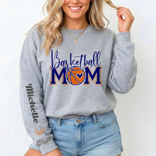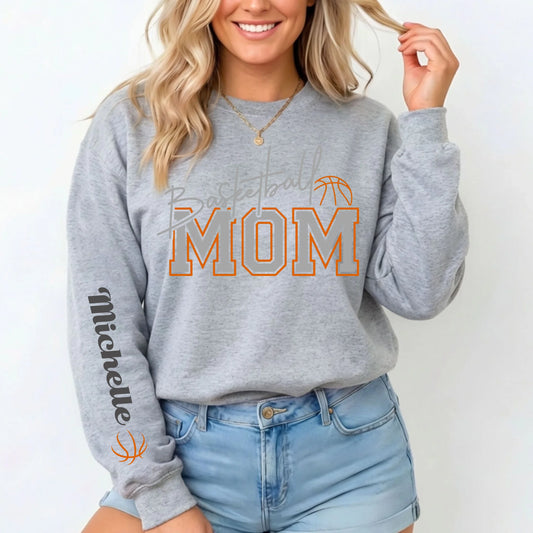 Personalized Basketball Mom Sweatshirt – Custom Mom Sweatshirt with Name on Sleeve