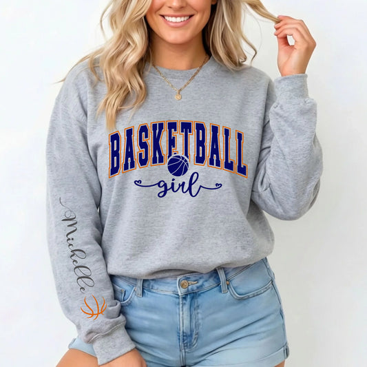 Personalized Girls Basketball Sweatshirt – Custom Girls Basketball Sweatshirt With Name On Sleeve