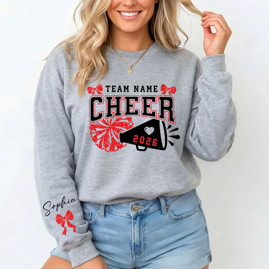 Personalized Cheer Team Sweatshirt With Name On Sleeve
