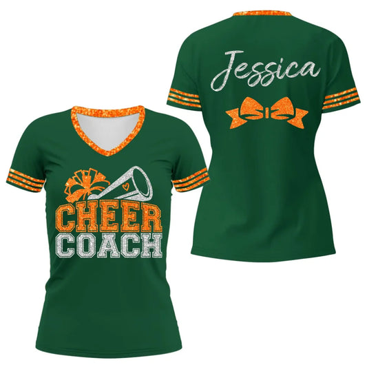 Personalized Cheer Coach Printed V-Neck T-Shirt for Cheer Coach