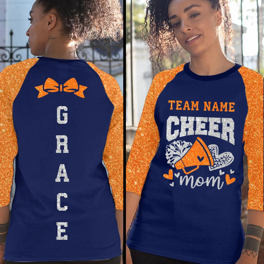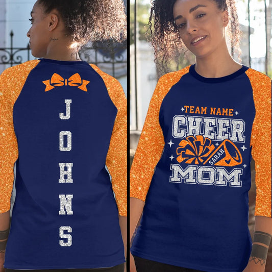 Personalized Glitter Cheer Mom Women 3/4 Sleeve Raglan T-Shirt