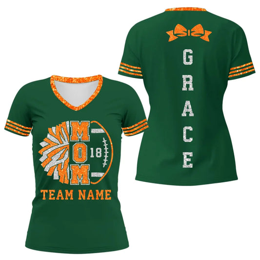 Personalized Glitter Football Cheer Mom Printed V-Neck T-Shirt