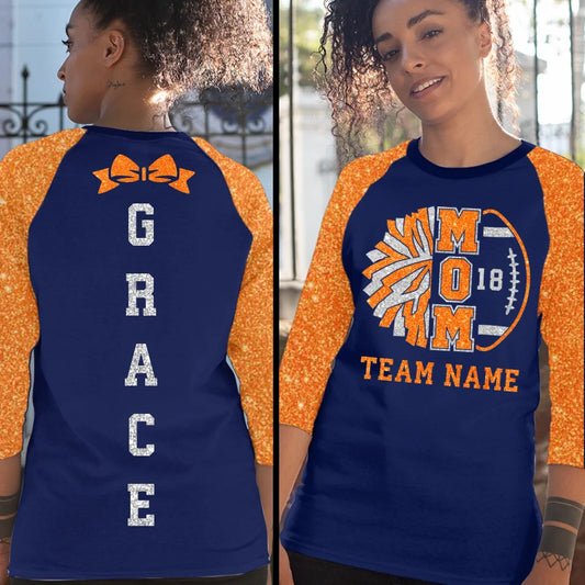 Personalized Glitter Football Cheer Mom Women 3/4 Sleeve Raglan T-Shirt