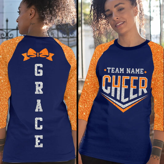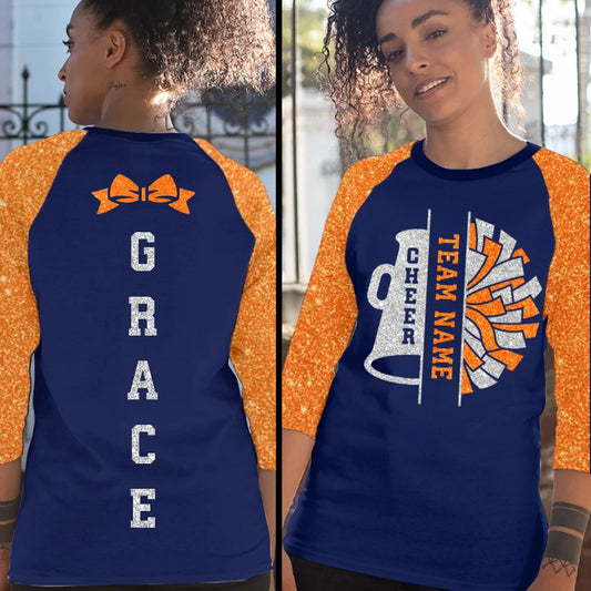 Personalized Glitter Cheer Cheerleader Team 3/4 Sleeve Raglan T-Shirt
