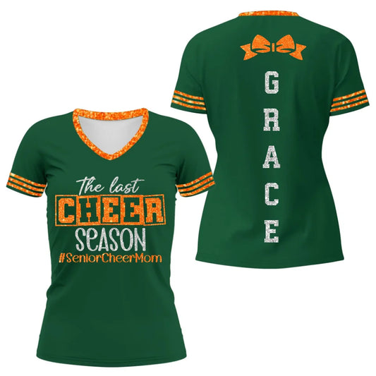 Personalized Glitter Cheer Mom The Last Cheer Season V-Neck T-Shirt
