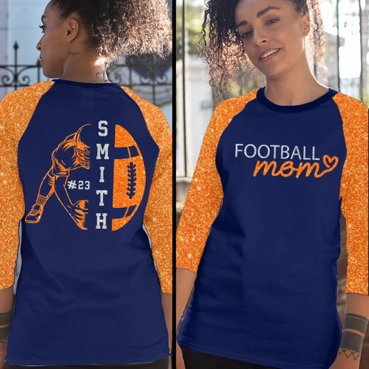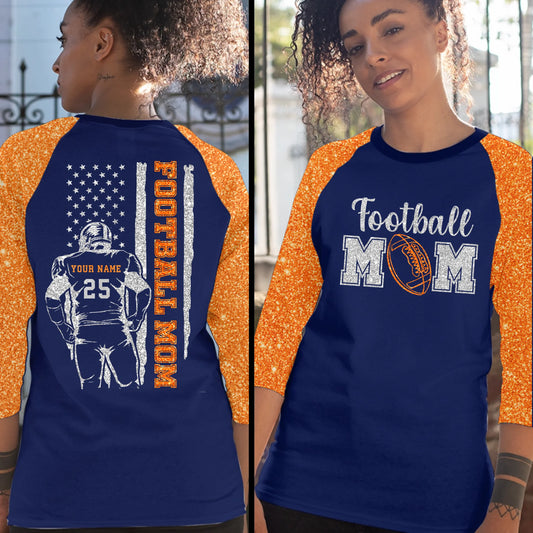 Personalized Football Mom Glitter 3/4 Sleeve Raglan T-Shirt
