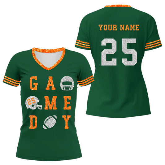 Personalized Glitter Football Name & Number V-Neck T-Shirt