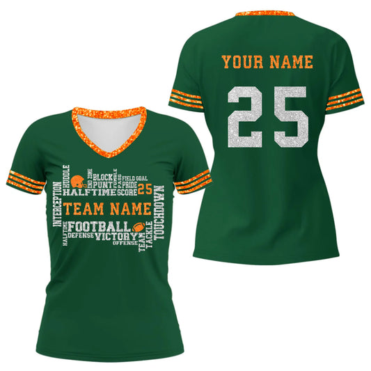 Personalized Glitter Football Words Women V-Neck T-Shirt