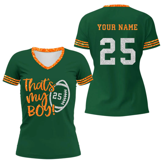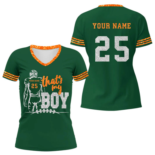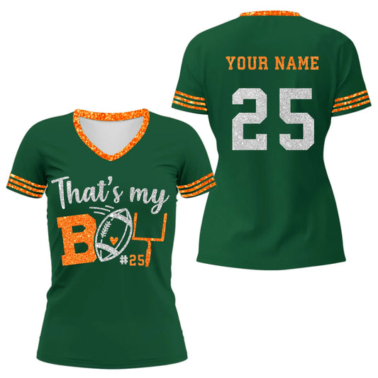 Personalized Glitter That's My Boy Football Mom V-Neck T-Shirt