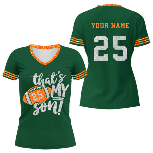 Personalized Glitter Football Mom That's My Son V-Neck T-Shirt for Football Mom