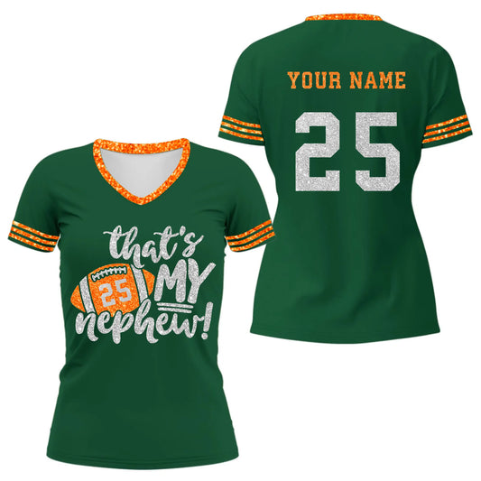 Personalized Glitter Football That's My Nephew V-Neck T-Shirt