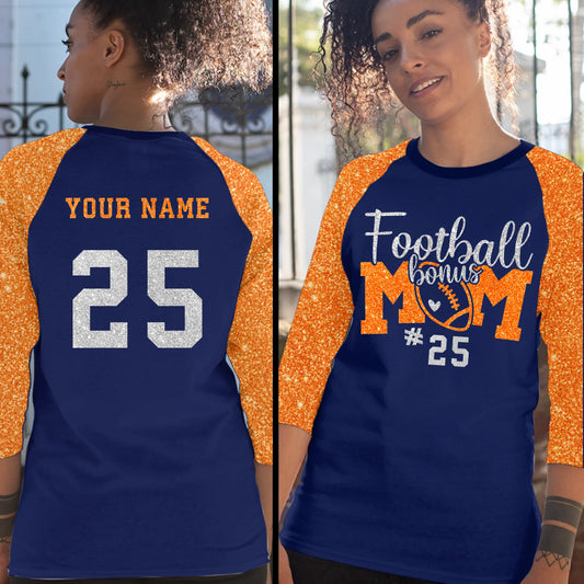Personalized Glitter Football Bonus Mom Women 3/4 Sleeve Raglan T-Shirt
