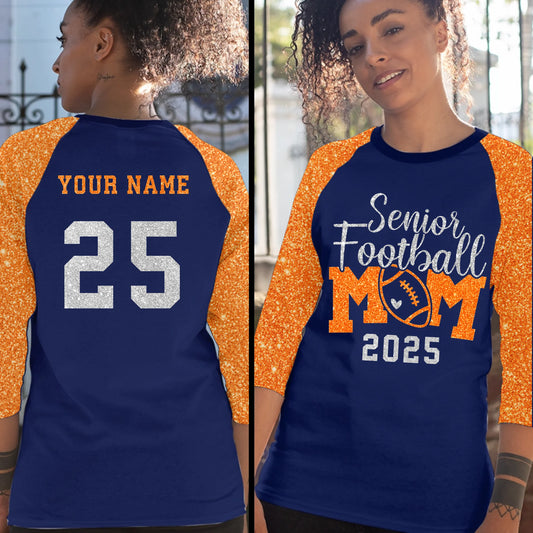 Personalized Senior Football Mom Printed 3/4 Sleeve Raglan T-Shirt