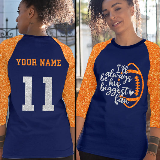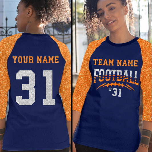 Personalized Glitter Football Women 3/4 Sleeve Raglan T-Shirt