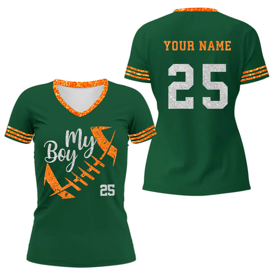 Personalized My Boys Football Mom Printed V-Neck T-Shirt