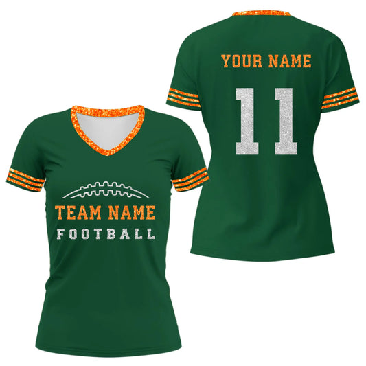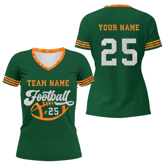 Personalized Glitter Football V-Neck T-Shirt with Name & Number