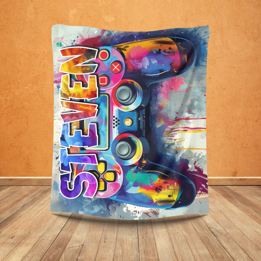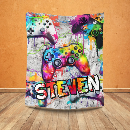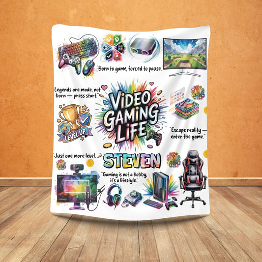 Personalized Watercolor Video Gaming Life Blanket With Custom Name