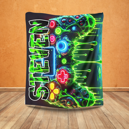 Personalized 3D Neon Gaming Blanket With Custom Name