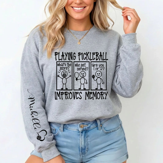 Personalized Funny Pickleball Improves Memory Sweatshirt With Custom Name On Sleeve