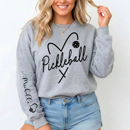Personalized Pickleball Sweatshirt With Custom Name On Sleeve